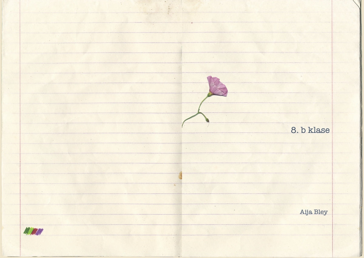 [ENG] Aija Bley's book “8. b klase ” (Class 8b) is designed as a teenager's diary, visually documenting the artist's memories of her school years. The unique record of the early 1980s reveals a wide range of topics, including love, self-seeking, growing up, and death.