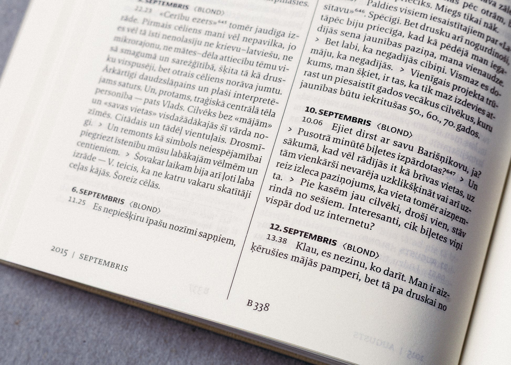 Divos sējumos apkopotas Andras Neiburgas interneta dienasgrāmatas izdevumā “Es esmu tas, kas paliek pāri. Dienasgrāmatas. 2003–2019”, ko sastādījis Ilmārs Šlāpins.