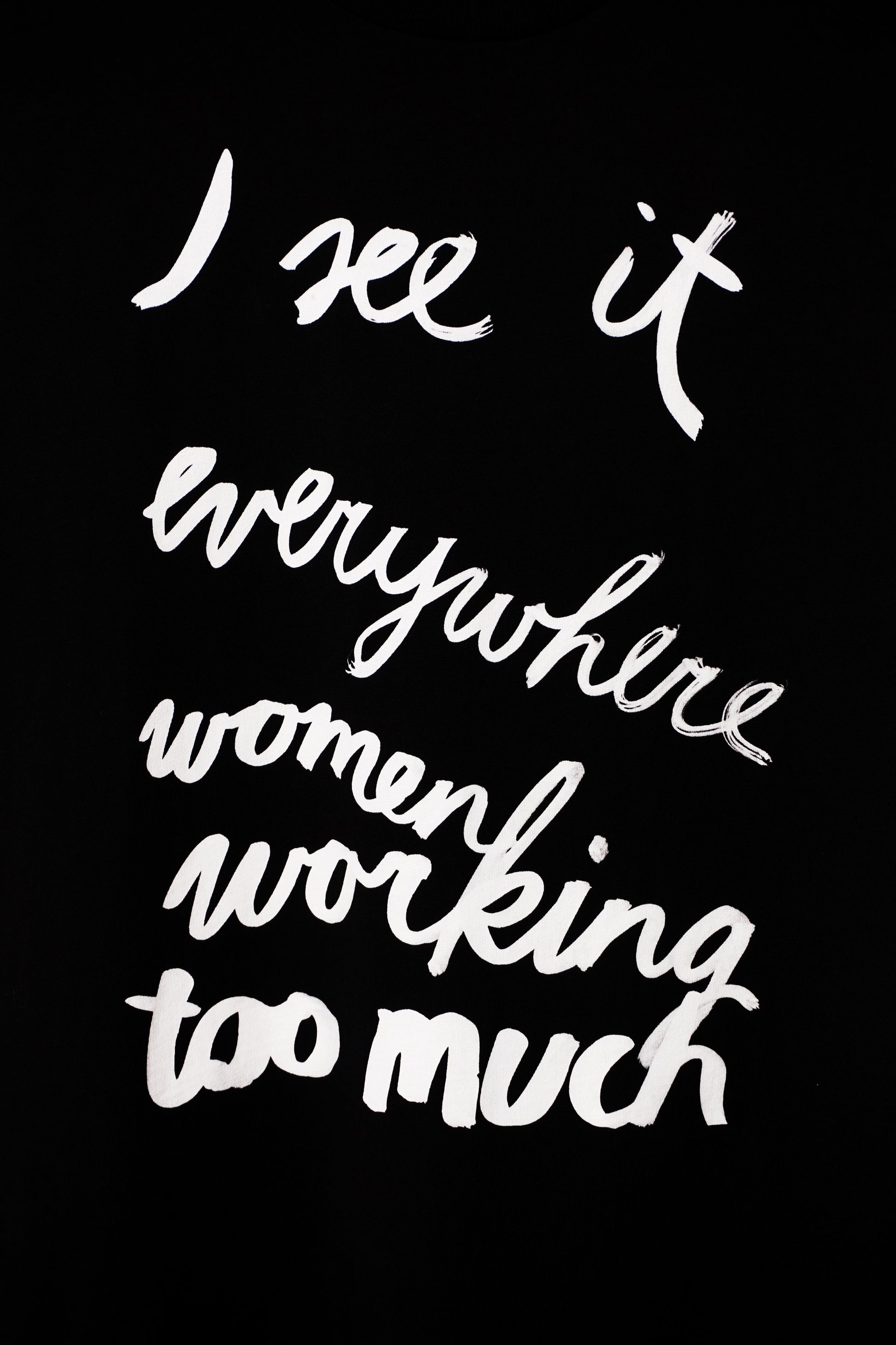 Unisex T-Shirt with the text "I see it everywhere women working too much" from Eva Vēvere collection