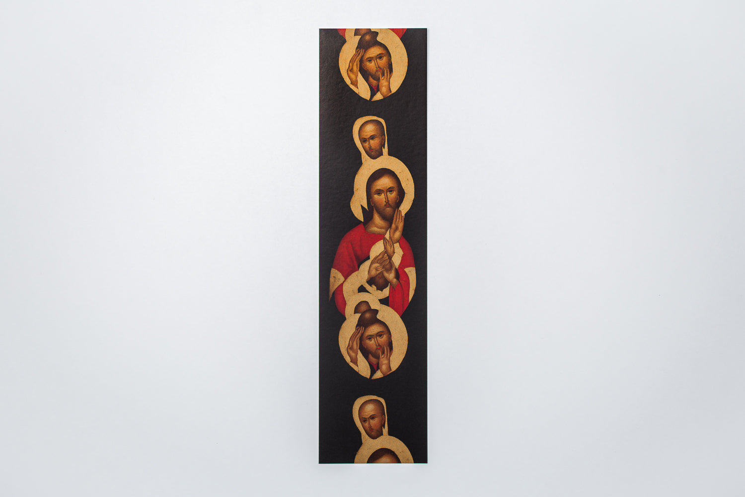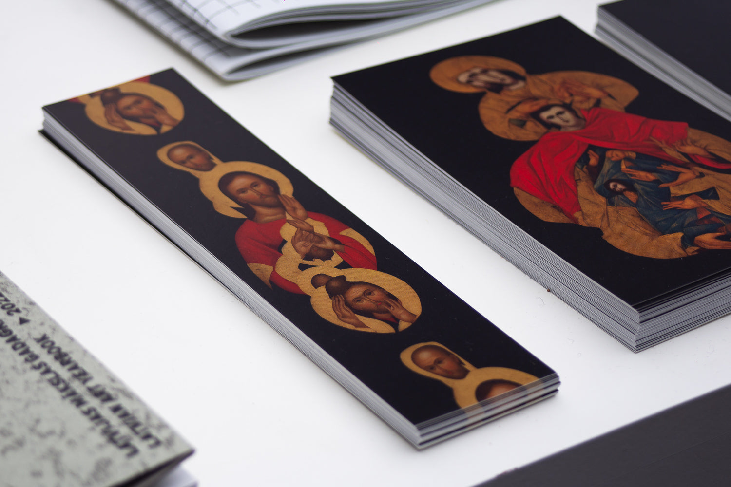 Bookmark from Jurģis Peters solo show "Synthetic Presence", which explores the interaction between humans and technology, reflecting on the belief in the ability of artificial intelligence to save humanity and the world.