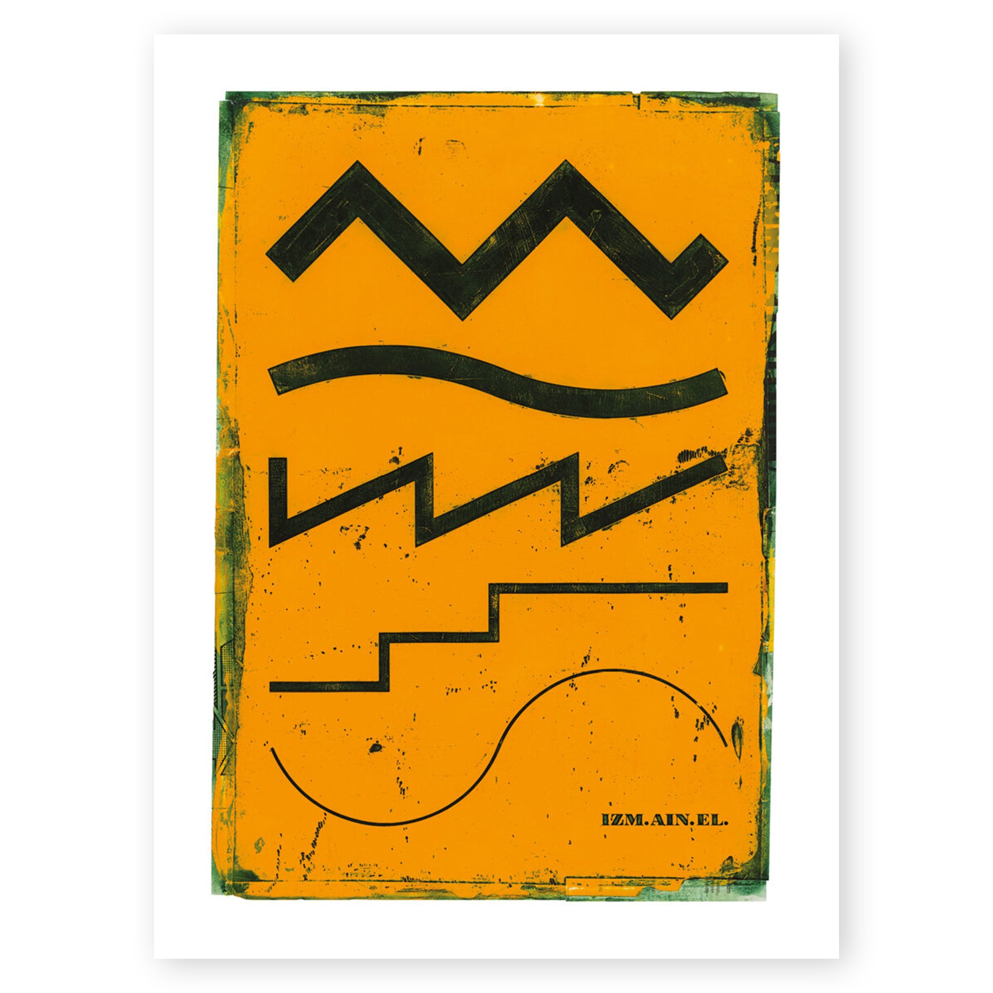 The artist Paulis Liepa has created a series of new works especially for his issue, the common theme is the tension brought by warfare in the movement of time and space. Bish Bash Bosh, black, red, yellow. An alternative for Germany, which still can't decide, a dramatic sunset or bacon for the whole country? Asterisks as a list of downed military equipment of the enemy, a masked political slogan with obscene words (like "***** ***" or "Jebać PiS" which is always found in Polish urban areas) or flies in amber souvenirs of the socialist era. The reproduced series of Paulis Liepa works has a sharp word, but no more. Not so much the old - Soviet-era "Ēzopa valoda" with hidden meanings from censors and enemies, as the new - not participating in the generative excess of either personal identity or AI. – Valts Miķelsons.