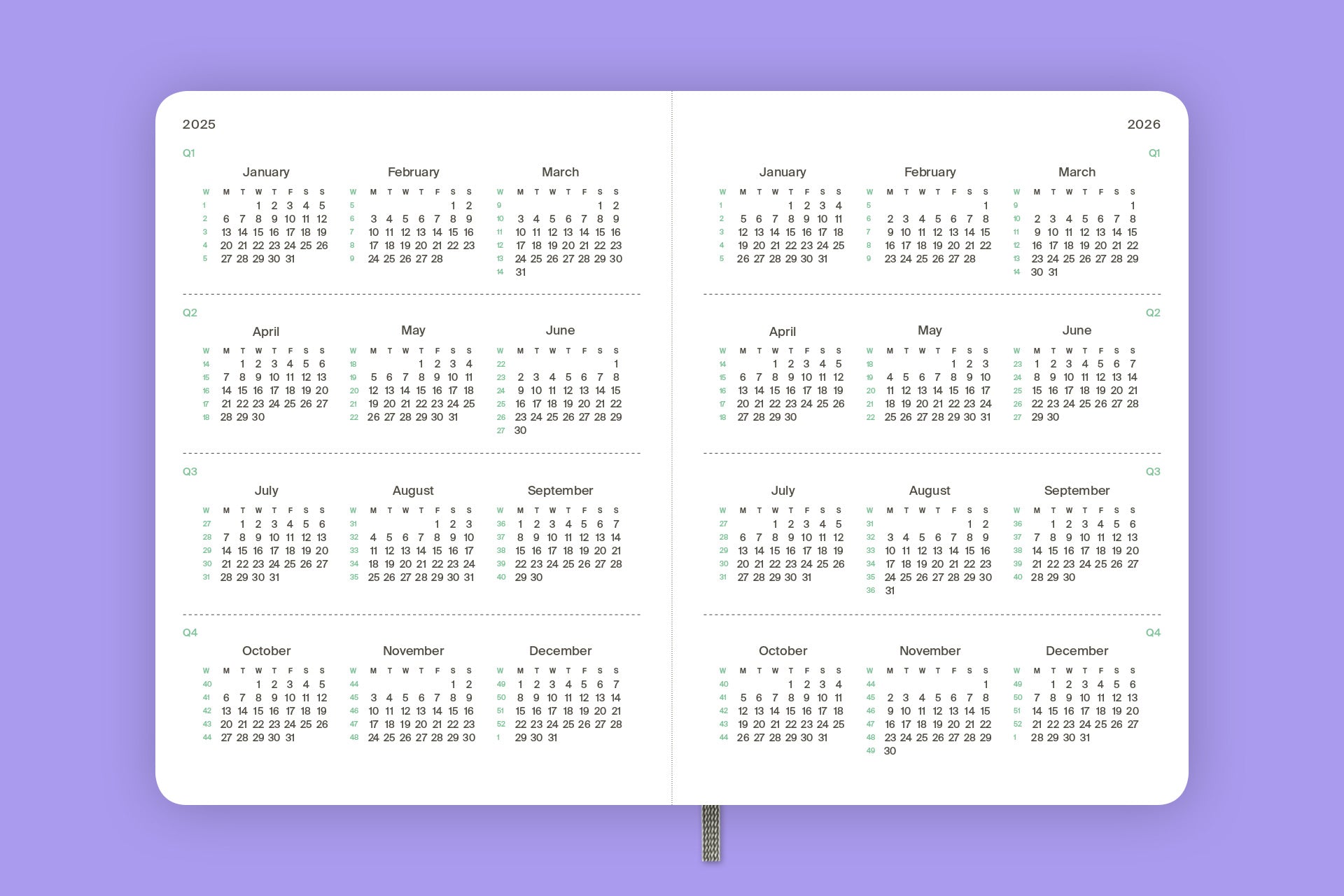 - 53 nedēļu atvērumus ar vietu pierakstiem, gada kalendārus, starptautiskus svētkus, vārda dienas;