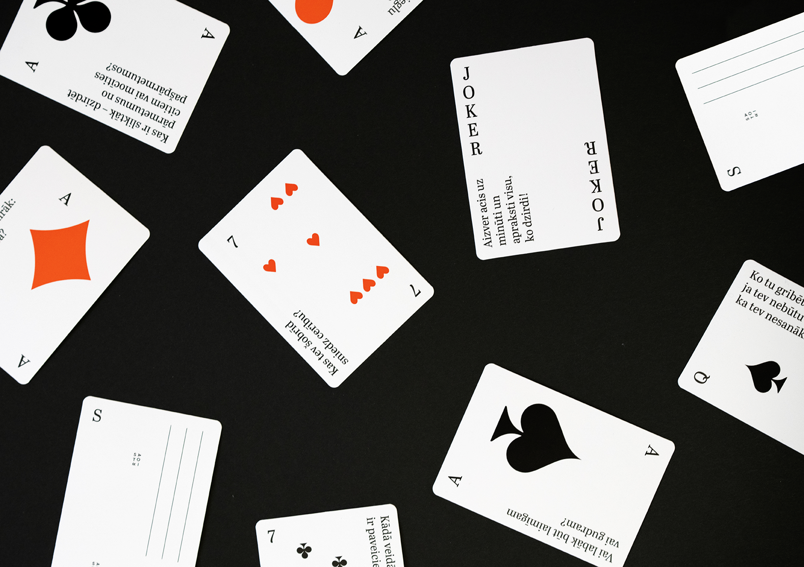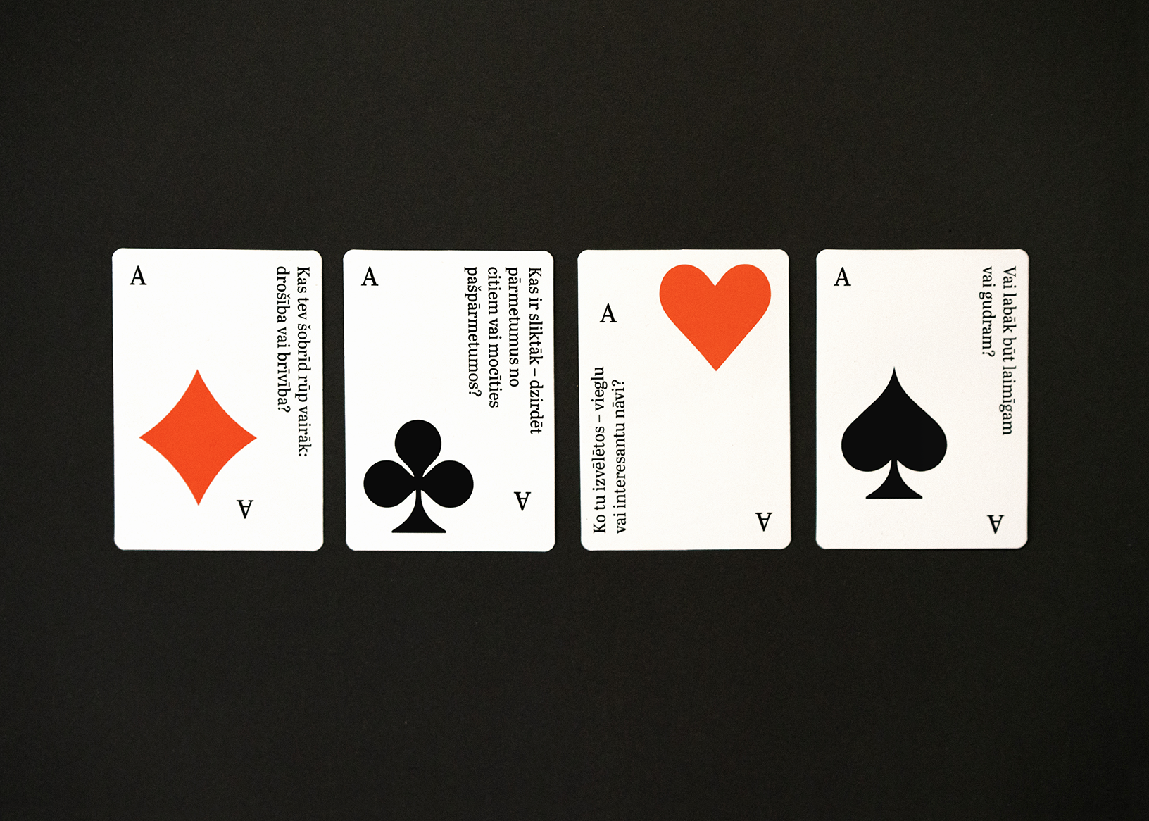 Interneta žurnāls “Satori” izdod “Sarunu kārtis”: 54 standarta spēļu kāršu kavu, kurā katru no kārtīm papildina jautājums.