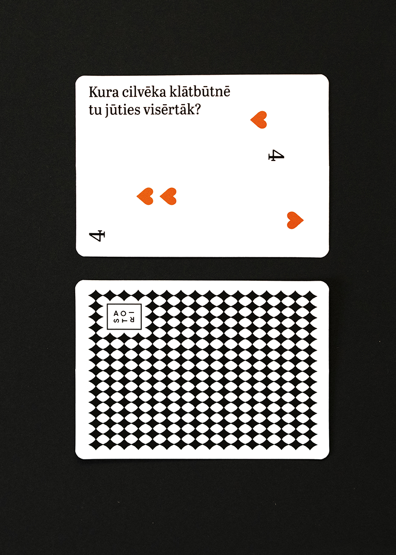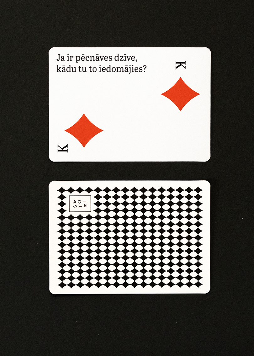 “Ko tu darītu, ja uz vienu dienu paliktu viens pats pasaulē?” Iedvesmojoties no “Satori” intervijām, biedrības “Ascendum” komanda izveidojusi kāršu kavu ar personiskiem un domas rosinošiem jautājumiem. Tie veicinās godīgas sarunas un uzticēšanos starp draugiem, ģimenes locekļiem un partneriem, kā arī ļaus labāk iepazīt sevi un citam citu. Ticam, ka kopā pavadīts laiks un atklātas sarunas padara cilvēkus iejūtīgākus, bet dzīvi – jēgpilnāku.